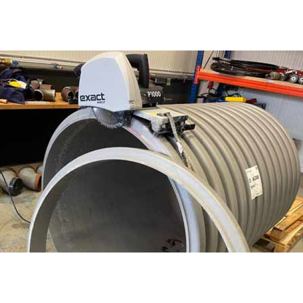 Az új EXACT P1000 fűrész nagy átmérőjű műanyag csövekre lett tervezve új egyedi kialakítással. A gép mérettartománya: külső átmérő 60 mm - 1000 mm (2,3" - 39,4"); maximális falvastagság 75 mm (2,9").