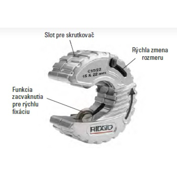 A RIDGID C-típusú csővágó a 15 és 22 mm átmérőjű rézcsövek vágására alkalmas, ugyanakkor egyéni jellegzetességeketnyújt, amelyek a csővágást egy magasabb szintre emelik.