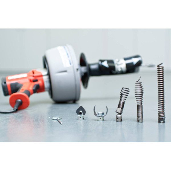 A K-45 tisztító kis és közepes méretű csövekhez alkalmazható lakó- és ipari területeken (WC-k, mosdók, konyhák, fürdőkádak stb.). A K-45AF-5 szettben (kat. Sz. 36043) mindent megtalál, amire szüksége van a különféle lerakódások (haj, zsír és egyéb) tisztításához. A készletben a tisztítóval együtt egy 8mm-es 7,6m hosszú spirál található a saját dobjában, de egy 10mm-es spirál is, amely 10,7m hosszú.