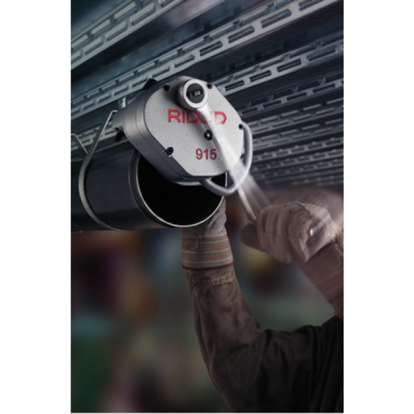 Az új RIDGID® hornyológép, 915-ös modell, kézi hornyológép, helyszíni hibaelhárításhoz. A 915-ös modell hornyoláshoz egy cső körül csak 3½" (9 cm) mozgásteret és minimum 23⁄4"